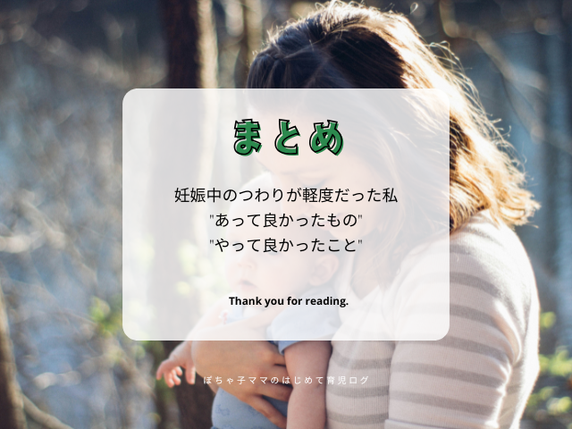「つわりが軽いから大丈夫」の気持ちも大事ですが、**つわりが軽いうちに整えておく**ことが本当に大切でした。