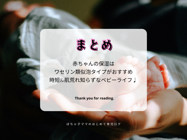 まとめ|赤ちゃんの保湿はワセリン類似の泡タイプで「続ける」が正解